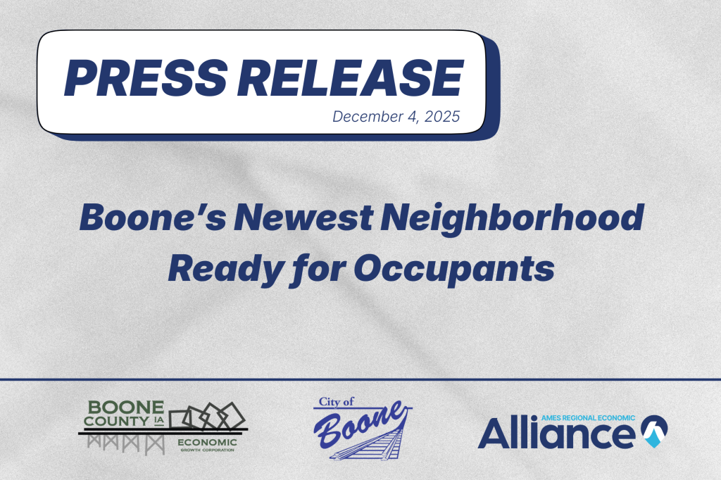 Chace Hauschilt, Development Specialist with Kading Properties, stated, “We wish to thank the City of Boone, the State of Iowa, the Boone County Chamber, and the Boone County Economic Growth Corporation for their unwavering support of Kate’s Landing. We appreciate the responsiveness and professionalism of the City and all those involved in bringing this project to reality in Boone.”